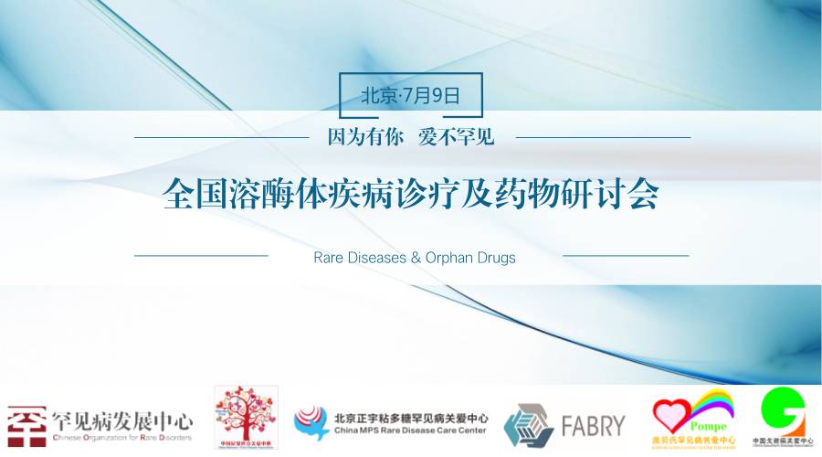 罕见病发展中心(CORD)、中国尼曼匹克关爱中心、北京正宇粘多糖罕见病关爱中心、中国法布雷病友会、庞贝氏罕见病关爱中心、中国戈谢病关爱中心(筹)作为国内最早一批关注溶酶体贮积症(LSD)的患者组织,在患者关怀救助、医患教育、社会融入及药物可及等方面开展了大量卓有成效的活动,为了更好地推动溶酶体疾病群体的诊疗及药物可及的工作,我们定于2017年7月9号在北京举办全国溶酶体疾病诊治及药物研讨会,诚挚邀请社会各界人士参会交流。