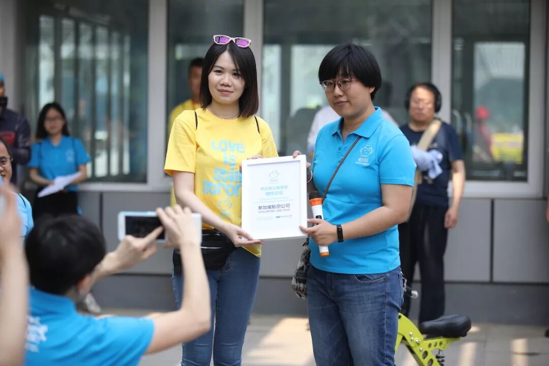 上午10点,活动正式开始,瓷娃娃中心主任周爽首先为到场的200余位伙伴,介绍了成骨不全症疾病的基本情况。她强调,今天大家看到多位即将徒步的瓷娃娃病友,相信能够感受到,瓷娃娃其实没有那么脆,他们完全有能力出行、上学、工作。随后,她向参加本次活动的新加坡航空公司、新韩银行(中国)颁发了荣誉证书、捐赠证书,新航中国区公共关系经理张雨菲、新韩银行(中国)总行行长禹相泰领取证书并表达了对成骨不全症等罕见病群体的支持。