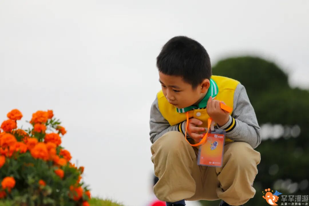 迎着明媚的阳光与凉爽的海风,孩子们先来到了珠海地标日月贝,路边开满了鲜花,博博路过一朵红色小花的时候,认真热情的给小花打招呼,要和花儿们交朋友,这美好又充满童心的场景,让日月贝也增添了一抹童话的色彩。