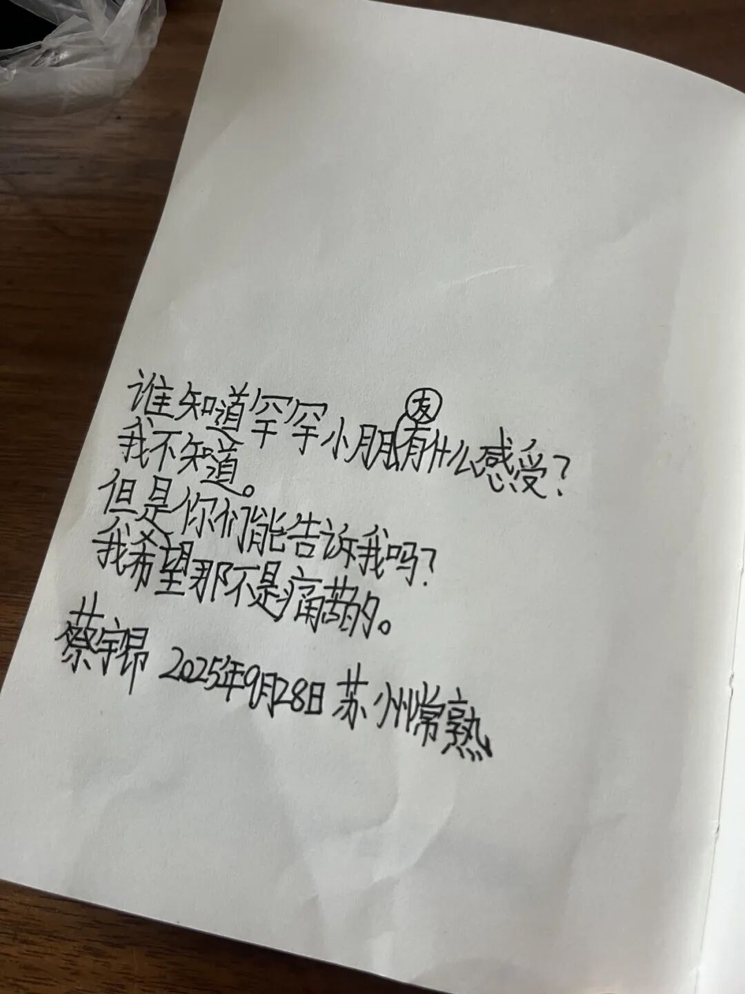 空白页上,渐渐多了新的字迹。一个孩子这样写: