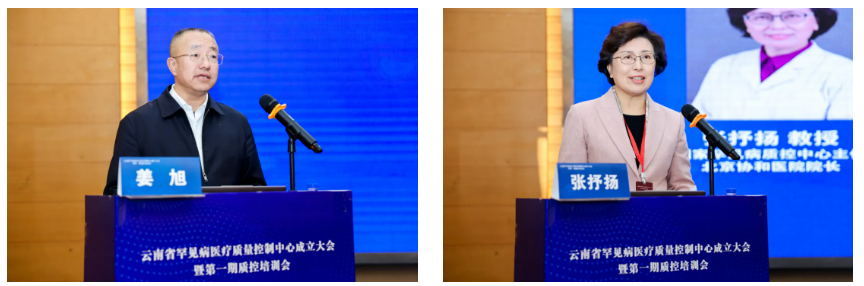 云南省卫生健康委党组书记、主任姜旭出席会议并致辞。国家罕见病质控中心主任、北京协和医院院长张抒扬作《罕见病诊疗和研究一体化创新体系建设的中国方案》主题报告。云南省医疗服务质量评估中心副主任陈凡宣读中心专家委员会及办公室成员名单,并为主任委员、副主任委员、委员及秘书颁发聘书。全省三级公立医院代表,省一院相关科室负责人共55人参加成立大会,全省16个州市144家医疗机构共350余名学员参与培训。