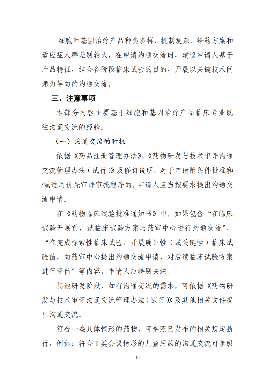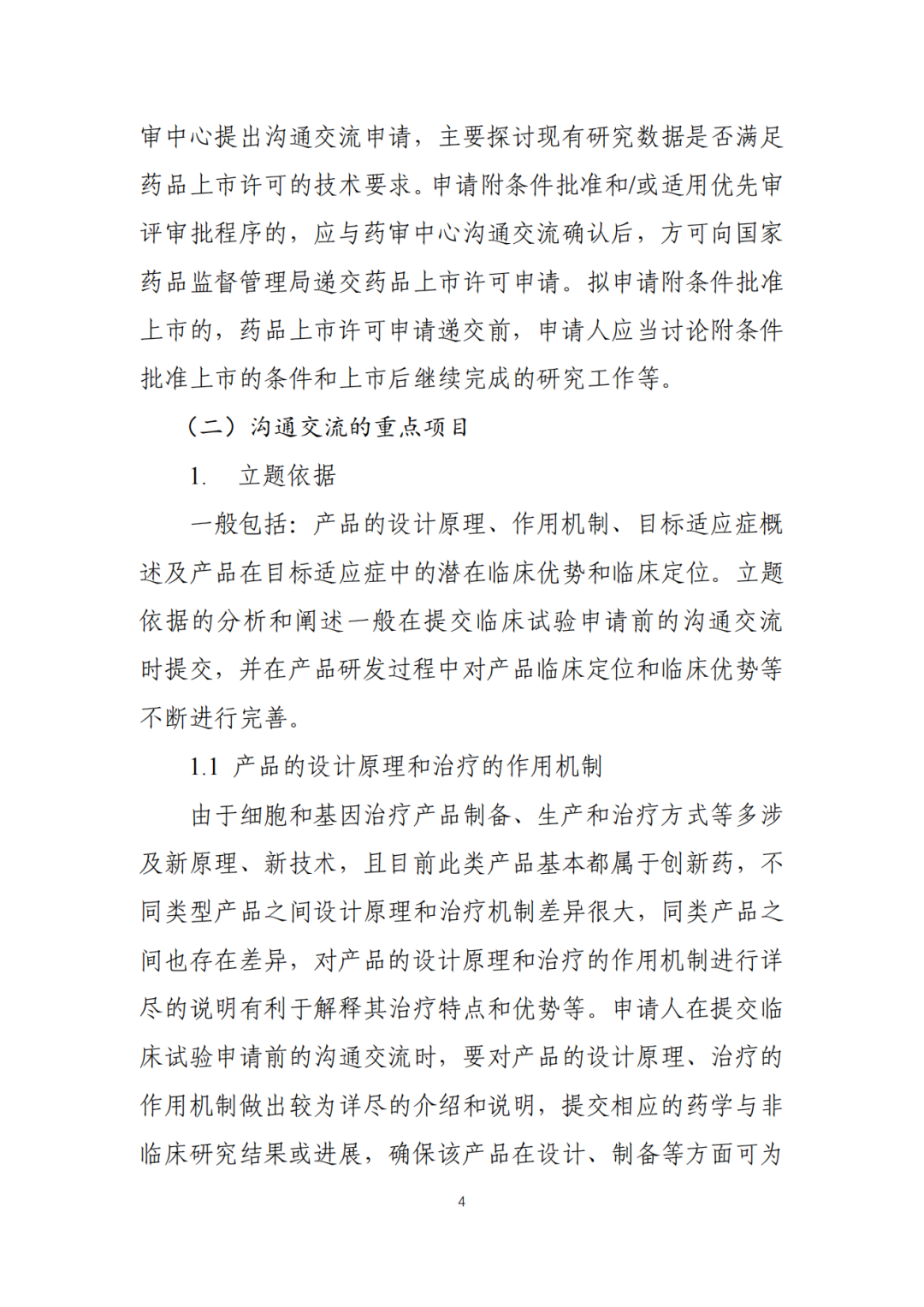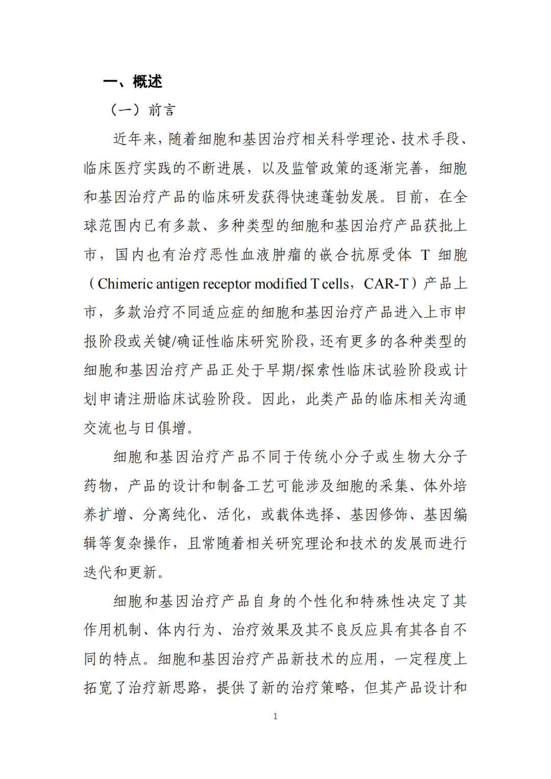 为指导和规范细胞和基因治疗产品临床研发过程中沟通交流的资料准备和临床研发要素考虑等工作,以提高沟通交流效率,促进细胞和基因治疗产品的临床研发,药审中心组织制定了《细胞和基因治疗产品临床相关沟通交流技术指导原则》(见附件)。根据《国家药监局综合司关于印发药品技术指导原则发布程序的通知》(药监综药管〔2020〕9号)要求,经国家药品监督管理局审查同意,现予发布,自发布之日起施行。