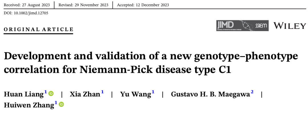近日,上海交通大学医学院附属新华医院/上海市儿科医学研究所/上海市儿童罕见病诊治中心张惠文研究员团队在The Journal of Inherited Metabolic Disease (JIMD)杂志发表了题为“Development and validation of a new genotype–phenotype correlation for Niemann-Pick disease type C1”的研究成果,总结了2013年至2023年于新华医院就诊的106名无亲缘关系的尼曼匹克病C1型(Niemann-Pick disease type C1)患者的临床特点与遗传学特征,这是迄今为止报道的最大规模的NPC1的临床研究。本研究首次揭示了NPC1的基因型-表现相关性,建立了基于NPC1基因突变的临床表型预测模型,有助于在疾病早期预测该病的严重程度,为临床实践中的遗传咨询与评估提供依据。