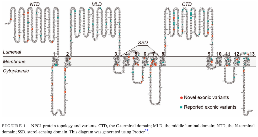 NPC1基因突变的异质性较强,截至目前,已经报道了578个致病和可能致病的NPC1变异,其中263个为错义突变。目前,仅有少数几个出现频率较高的NPC1变体被发现与特定的临床表型相关,如p.G992R、p.R978C、p.D874V和p.P1007A与轻型相关。对于绝大多数NPC1突变来说,无相关的表型信息,这对于在疾病早期特别是尚未出现神经系统受损之时,对患者病情的难以预判。