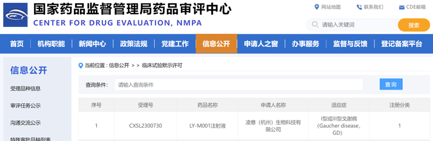 2024年1月16日,凌意(杭州)生物科技有限公司(以下简称“凌意生物”)自主研发的I类治疗用生物制品LY-M001注射液的新药临床试验(Investigational New Drug,IND)申请顺利获得国家药品监督管理局(NMPA)的默示许可(受理号为:CXSL2300730)。