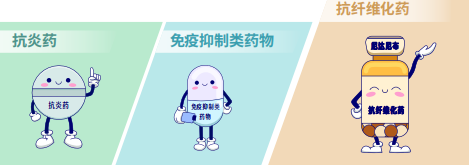 “治疗篇”针对患者最关心的用药问题提供了科学解答,并从科学角度解释了不同药物的治疗原理。尽管PPF目前尚无法彻底治愈,但规范的全程治疗可有效延缓疾病进展、延长患者生存期并减少急性加重。治疗策略可分为两个阶段:若疾病仍处于炎症驱动为主时期,应使用抗炎药物和免疫抑制剂,以抑制炎症反应及纤维化进程;若已进入明确的进展性纤维化阶段,则需采用抗纤维化药物治疗——该方案为国际指南核心推荐,也是当前唯一能够显著延缓各类PPF患者肺功能下降的根本性治疗方法。