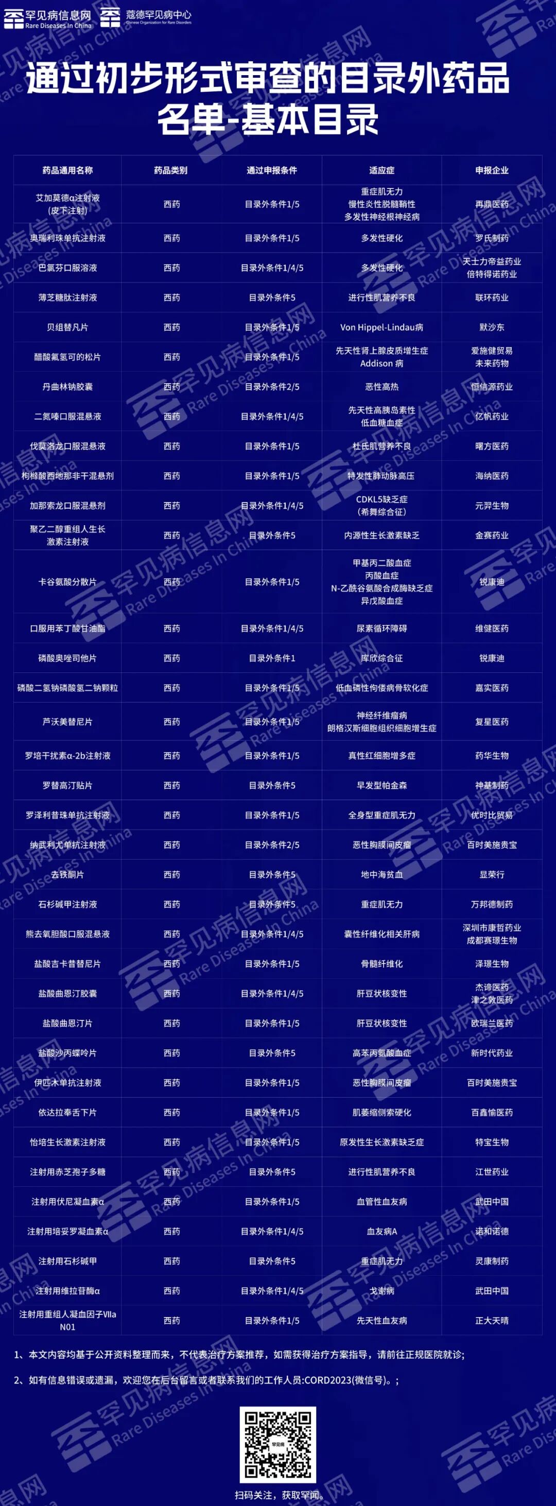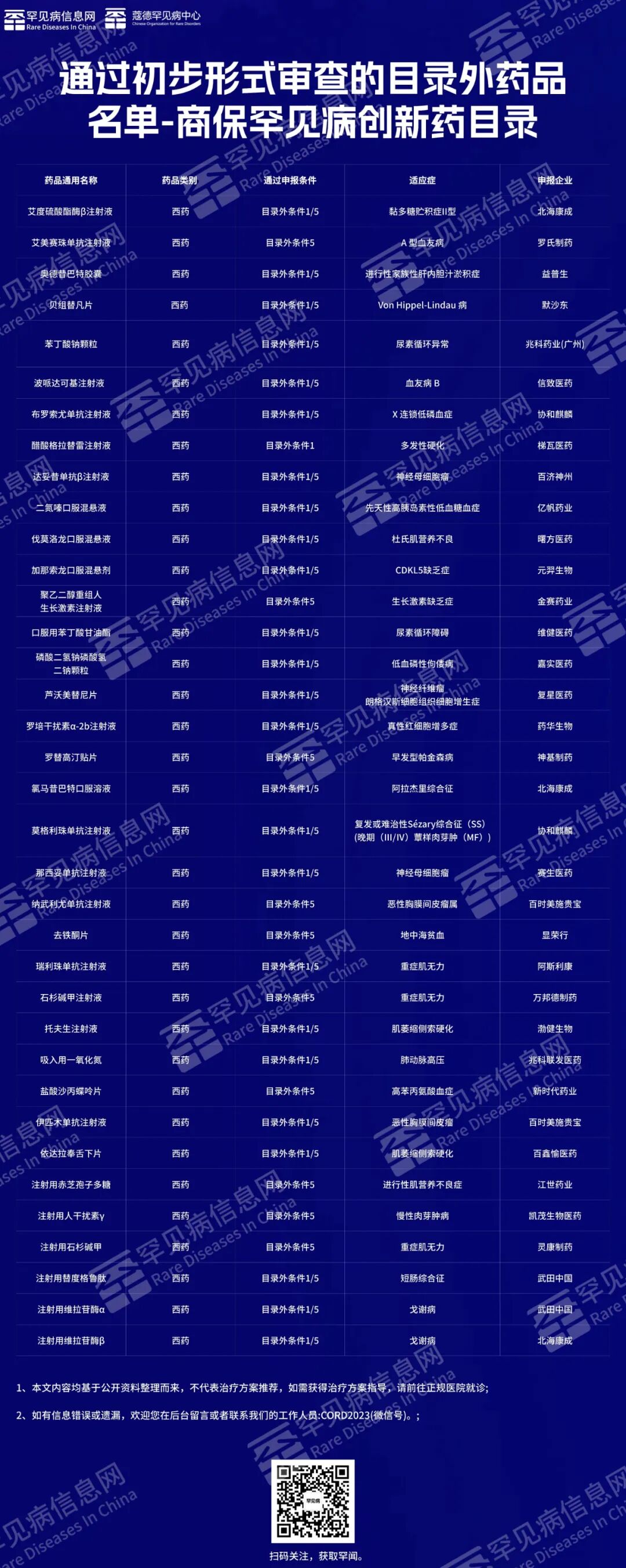经罕见病信息网统计,本次共有54种罕见病药品通过初审;37个罕见病药品通用名通过基本医保目录形式审查,36个罕见病药品通用名通过商保创新药目录形式审查,更值得关注的是,有19种药品同时通过了基本医保与商保 “双目录” 的初步审查。在商保创新药目录通过审查的药品中,不乏血友病基因治疗药物波哌达可基注射液、黏多糖贮积症治疗药艾度硫酸酯酶 β 注射液等高价罕见病用药。