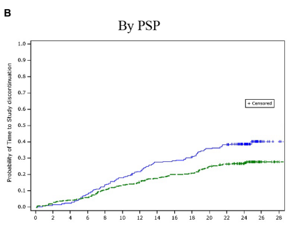 研究显示PSP亚组中前25%患者的估计研究中止及停药时间长于非PSP亚组。非PSP亚组中报告因不良事件、缺乏疗效、撤回同意书、财务问题而中止研究的患者比例高于PSP亚组。与PSP亚组相比,非PSP亚组至少有一次复发的患者更多。EDSS进展患者的比例在两个亚组之间具有可比性。