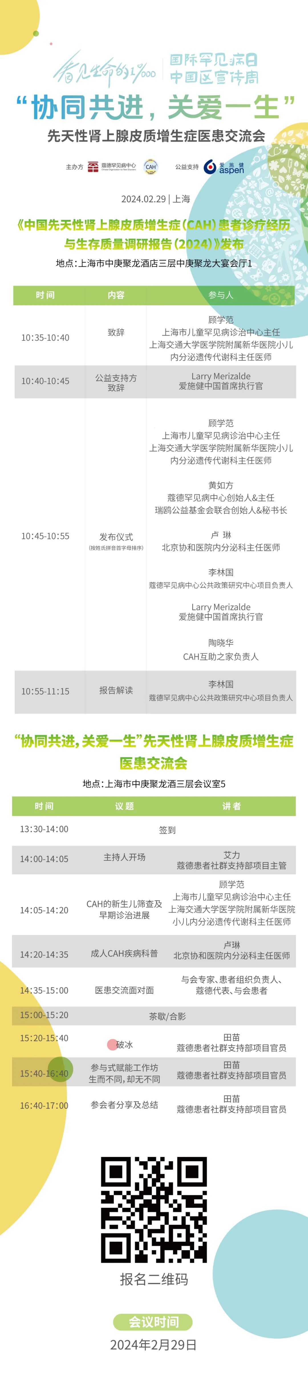 2024年2月29日,我们诚邀您到“2024年国际罕见病日中国区宣传周”上海主会场见证《中国先天性肾上腺皮质增生症(CAH)患者诊疗经历与生存质量调研报告 (2024)》的发布。