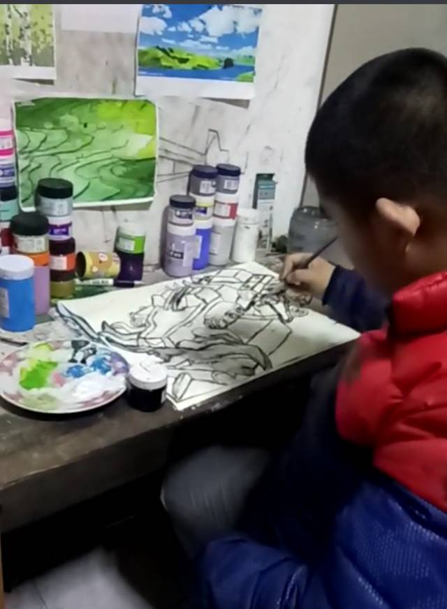溢柠从小就喜欢五颜六色的水彩笔,喜欢涂鸦,在三岁时脸上的痘痘越来越多,跟妈妈出门在外总会有的人投来异样的眼光。从那时候起妈四处寻医为孩子找治疗方法,孩子慢慢长大开始懂事,懂得妈妈的艰辛。经常拿起画笔画妈妈在寻医问药时的样子,一画就是半天。画画给他带来很多的快乐,跟妈妈在一起总有说不完的话,妈妈并鼓励他将心中最美好的东西通过画画表现出来。传递这一份快乐!