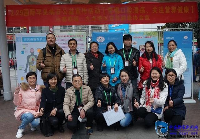 2月20日,在一年一度的国际罕见病日(每年2月的最后一天)来临之际,为了引起更多的社会关注,在重庆九龙坡区科协和瓷娃娃罕见病关爱中心的大力支持下,白塞联盟与重庆九龙坡区营养健康协会、垂体瘤病友会积极联动、一起发声,以“从不罕见”为主题,在2016年国际罕见病日前开展了名为“警惕口腔溃疡 关注营养健康”的2016国际罕见病日宣传活动。活动在重庆杨家坪步行商业区举办。在宣传活动现场,重庆九龙坡区科协领导、众多健康营养协会的营养师、罕见病组织,病友代表、热心志愿者向社会公众进行了广泛的罕见病知识和健康营养知识宣传。