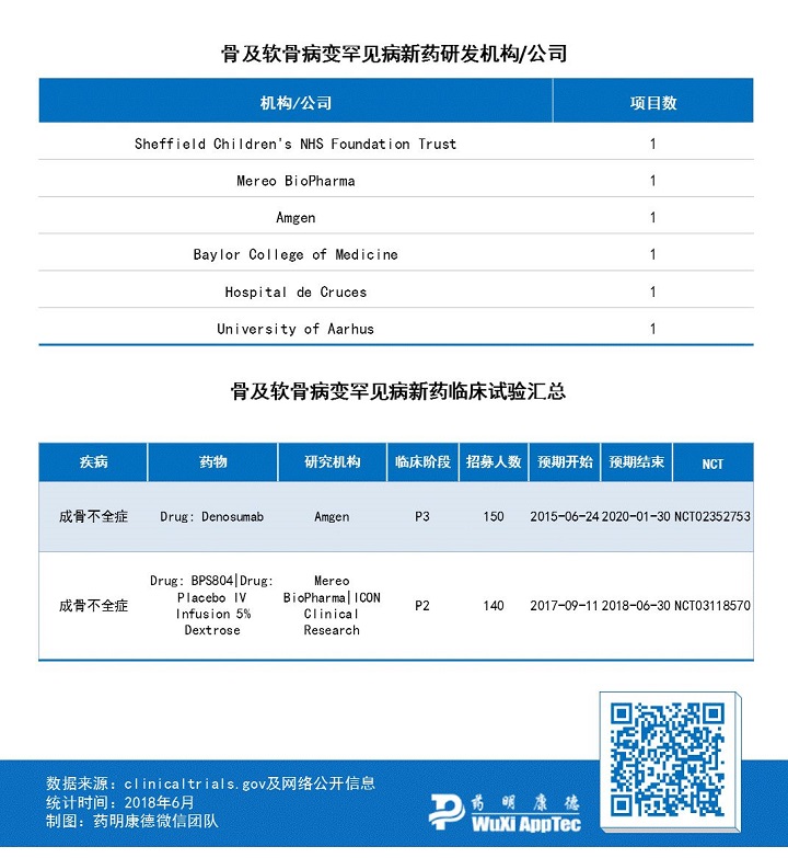 本期我们针对骨及软骨病变罕见病进行全面盘点,梳理全球领域的罕见病种类,以及药物研发最新进展,希望为业界提供参考。骨及软骨病变罕见病的种类主要包括假性软骨发育不全、先天性胫骨假关节、多发性骨骺发育不全症、多发性骨髓瘤、成骨不全症以及复发性多软骨炎等几大类。整体来看,这些罕见疾病的研发公司并不多,其中用于治疗成骨不全症的相关新药尚在临床试验阶段。