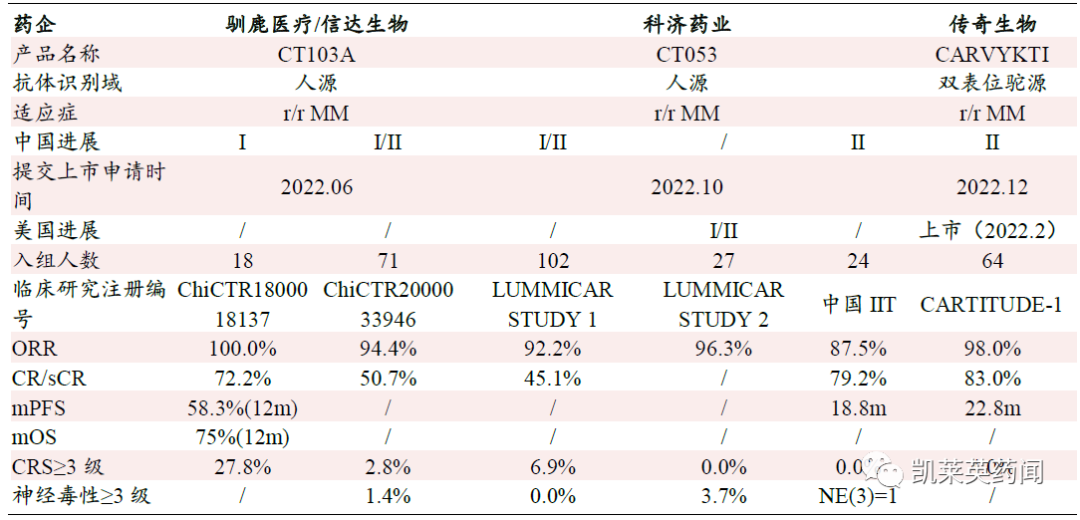 国内BCMA-CAR-T 产品临床数据及上市情况