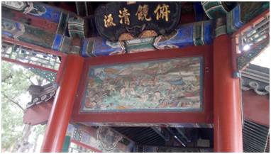 颐和园中令我印象最深的是那条长廊,它也是一条五光十色的画廊,廊间的每根枋梁上都绘有彩画,色彩鲜明,富丽堂皇。彩画的内容多为山水、花鸟图以及中国古典四大名著中的情节。画师们将中华数千年的历史文化浓缩在这长长的廊子上。听路过的旅行团的导游说:其中许多画是画师们根据慈禧意图绘制的。