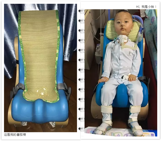 这个蓝色的tomato椅子,是美国针对SMA宝宝没有力量的发明,它能给力支持我松软的身体,我能每天舒服坐2-3小时,这样能减轻卧床对我的肺部伤害。每天下午坐着看2小时动画片是我一天之中最愉快的时间。