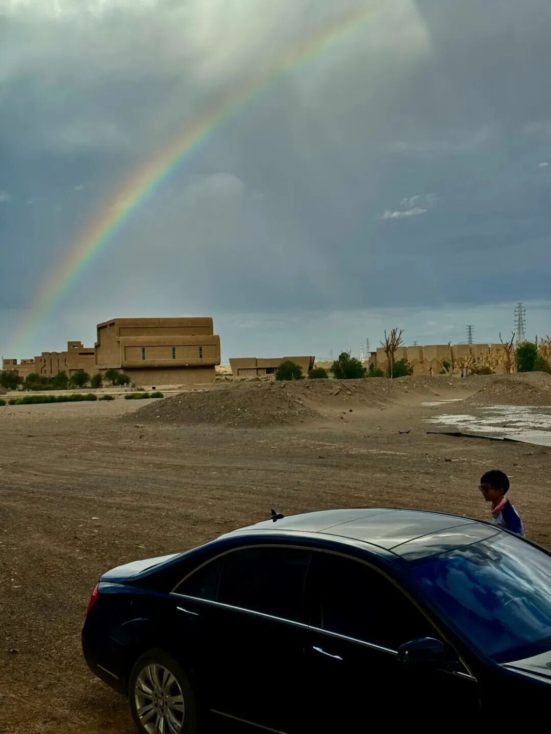 当彩虹出现在天边的时候,这支队伍暂时分化。家长们集中在沙丘上的亭子里恳谈——据说他们不出几分钟全都哭惨了。这也是“罕罕漫游”在每次行程中都会安排的一个环节:创造出一些时间空间,让患者的监护人、陪护人缓释片刻,抱团打气。事后回想,这也就是黄如方强调的进行心理疗愈的一个重要部分。