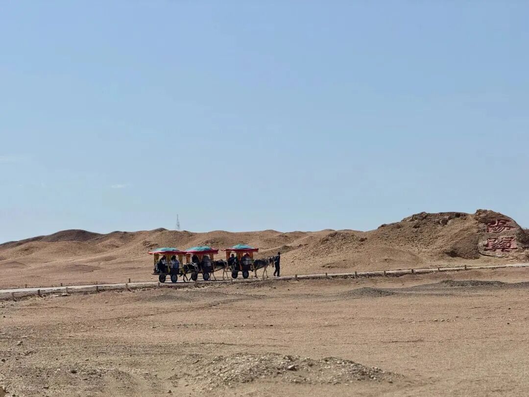 导游说,家人们,现在可以去上一下洗手间,然后进入阳关博物馆参观。七八台手推轮椅陆续撤出,小一点的“罕罕”们被父母抱去阴凉处休息。合影打卡点还原为沙色城楼下的一片空地,立刻被敦煌特有的明亮与寂寞所填满。