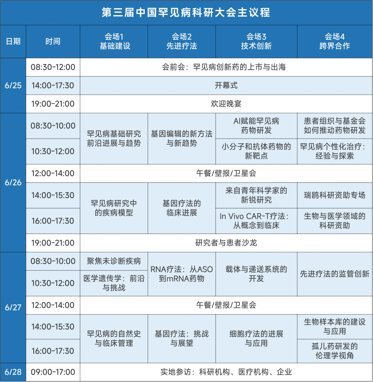 大会设有4个分会场和若干专题会、卫星会,围绕基础建设、先进疗法、技术创新、跨界合作等多个议题开展学术分享与交流,报告罕见病科研最新进展与原创性成果,展示罕见病研究的中国力量与国际视野。