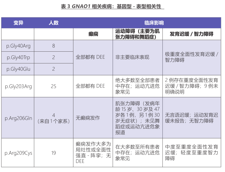 目前全球确诊案例实际已超400例,手册对常见的复发性变异进行了详细的基因型-表型关联分析,这对预后判断及干预策略的制定具有重要参考价值。下表节选了部分常见复发性变异的关联特征,更全面的基因型-表型谱系请参阅手册完整内容: