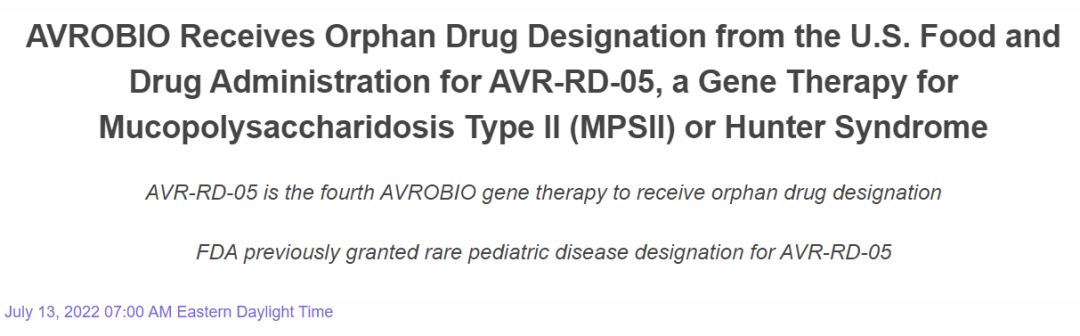 更让患者家庭振奋的是,与传统疗法“每年 60 万美元、终身用药” 的沉重负担相比,AVR-RD-05 只需一次治疗,就能让患者摆脱长期依赖,为罕见病治疗开辟了 “低成本、高疗效” 的新路径。早在2022年,该疗法就获得 FDA 授予的儿科罕见疾病资格认定和孤儿药资格认证,成为行业关注的焦点。