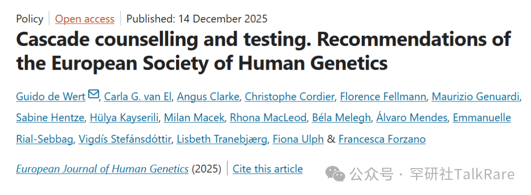 目前,关于如何以负责任的方式优化亲属告知流程、提高检测参与率的讨论正在持续推进。欧洲人类遗传学会(ESHG)为这场讨论提供了专业视角,并基于伦理分析提出相关建议 —— 结合收益与成本的比例性、有限资源的审慎使用原则,明确了级联检测的合理适用场景,以及说服力较弱的情形。
