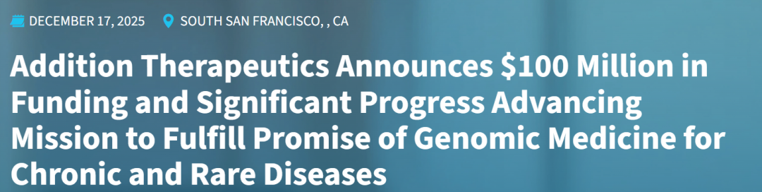 12月17日,基因治疗生物技术公司Addition Therapeutics 正式亮相,并宣布获得了1亿美元融资,用以推进其基于RNA的非病毒基因治疗平台研发,推动为受慢性病和罕见病影响的患者实现基因组医学的变革性承诺。