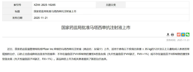 12月22日,辉瑞披露其血友病疗法Hympavzi(马塔西单抗)长期扩展研究中,一名伴有活性抑制物的A型血友病患者在小手术后发生血栓性卒中死亡。该患者已接受每周预防性Hympavzi治疗3年。