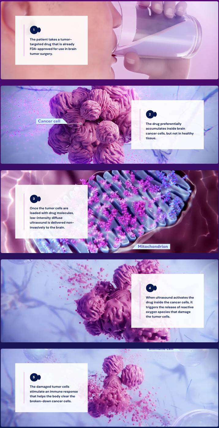 从临床转化角度来看,Alpheus的这种基于5-ALA的系统给药结合非侵入性物理超声激活的模式具备极高的临床转化潜力。其一,技术路径成熟可控,药物分子与超声设备均基于成熟平台开发,生产与临床应用可标准化;其二,临床需求刚性极强,胶质母细胞瘤患者无有效后续治疗手段,新疗法获批后可快速实现临床渗透;其三,安全性与依从性优势突出,非侵入性治疗无需住院,可在门诊完成,具备“门诊化”治疗的潜力,这又可以大幅降低医疗成本与患者负担。