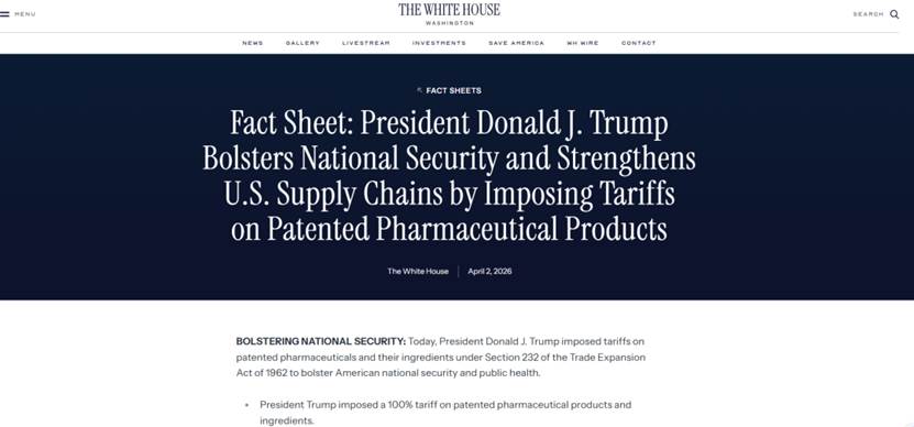 此次关税的征税范围明确指向“专利药”,即处于专利保护期内的原研药及其改良型新药。
