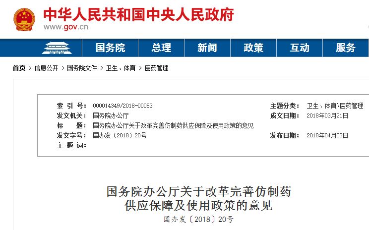 日前,国务院办公厅印发《关于改革完善仿制药供应保障及使用政策的意见》(以下简称《意见》)。