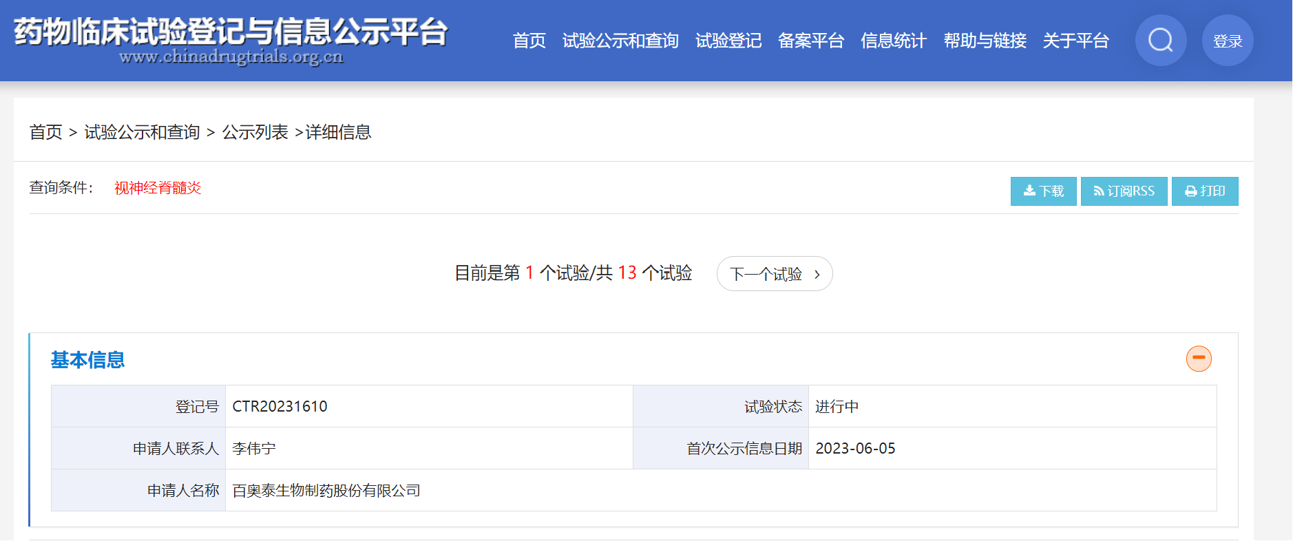目前,正在开展“一项评价BAT4406F注射液在视神经脊髓炎谱系疾病患者中的有效性和安全性的II/III期临床研究”。BAT4406F(重组CD20全人源单克隆抗体注射液)是一种糖基化优化的免疫球蛋白G1(IgG1)亚类的全人源单克隆抗体,用于视神经脊髓炎谱系疾病(NMOSD)治疗,可靶向结合B细胞及前体细胞表面的CD20,达到清除B细胞的目的,从而减少NMOSD的复发和减缓神经功能障碍进展。