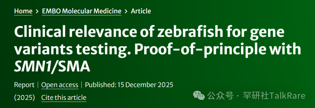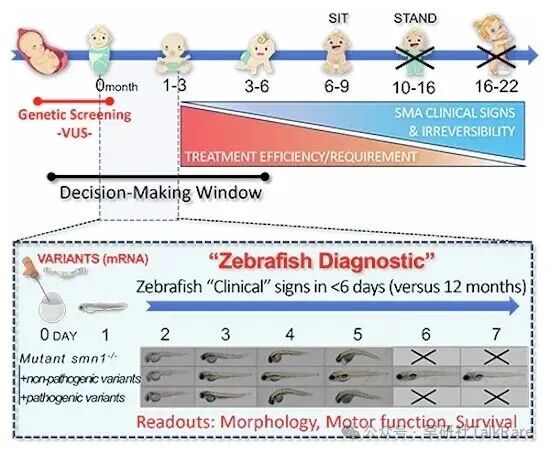 除脊髓性肌萎缩症外,本研究为斑马鱼模型作为意义未明变异分析的高效转化医学工具提供了充分的概念验证依据,同时提示该技术手段应纳入临床应用范畴,为疾病诊断与治疗决策提供支撑。