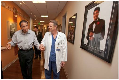阿里与帕金森病的抗争在菲尼克斯巴罗神经研究所穆罕默德阿里帕金森中心永垂不朽。2016年该中心接诊超过13000名患者,其中有大约1000名新的帕金森病患者和600名新的其他运动障碍疾病患者。