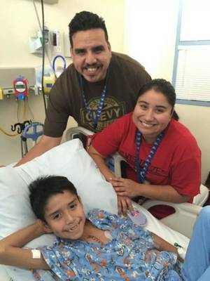 Isaac Guajardo罹患马凡综合征——一种危及心脏等重要器官的遗传病 8岁的Isaac Guajardo是一个充满活力的快乐男孩,正如《圣经》对他名字的定义那样“欢笑而喜悦”。 尽管医疗设备和医院病床经常出现在这个“酒窝男孩”照片的背景中,但他那明亮的棕色眼睛和富有感染力的微笑更让人印象深刻。 Isaac的微笑能够点亮整个房间,甚至是他的病房。 最近,他在医院病房待了很长一段时间。 Guajardo是图莱里枫树小学(Maple Elementary School in Tulare)的一名学生,正在和马凡综合征(Marfan Syndrome)做斗争。马凡综合征是一种影响体内结缔组织的遗传病。结缔组织为身体的许多重要部位提供力量、支持和弹性,包括肌腱、软骨、心脏瓣膜和血管。 在过去艰难的一年里,Isaac经历了三次开心手术,并在山谷儿童医院(Valley Children’s Hospital)和斯坦福露西尔帕卡德儿童医院住院多日。现在,他正在为他年轻人生旅程的又一篇章做准备——心脏置换。 齐心协力的一家人 在Samantha Guajardo与未婚夫Isaac Sr.相遇时,她对马凡综合征并不熟悉。之后不久她就得知了Guajardo家族的悲剧历史,Isaac Sr.的父亲也被诊断为马凡综合征,32岁时因心脏手术后并发症去世。Samantha知道她的丈夫也遭受马凡综合征的折磨,该病在美国影响5000人中的一人。 两人迅速坠入爱河步入婚姻殿堂,组建家庭并孕育了四个孩子。就在2006年他们的第一个孩子Jalissa出生一周后,Isaac Sr.开始出现胸痛。Samantha知道丈夫的马凡综合征诊断,所以虽然她还在剖腹产术后恢复中,但仍坚持把丈夫送到了急诊室。 Guajardo一家,在漫长的一年住院期间,保持坚强。 Isaac Sr.的主动脉正在断裂,这种危及生命的状况致使他被空运到斯坦福大学进行紧急开心手术。同时,Samantha也出现剖腹产术后感染,夫妇二人双双入院接受治疗。在此期间,宝宝Jalissa被祖父母接回家。 很快,夫妻二人适应了有宝宝的生活,他们给Jalissa取了个昵称“小胖墩”(Chunky),生活又回归正轨。昵称给一家人带来了很多欢乐,所以现在他们的孩子都有自己特殊的昵称。 他们惊讶地发现自己正在孕育第二个孩子,而且在2007年迎来了家庭新成员Ruben。Ruben在32周时出生,患有唐氏综合征。 “他眨着闪闪亮的眼睛时最可爱了,”Samantha解释Ruben的昵称“红宝石”(Ruby Ruby)时说道。Ruben现在十岁。 新一代 2009年,IsaacJr.出生,Samantha说她看到这个宝宝的身体就立马知道他患有马凡综合征。“我想把关于他的一切当做一个惊喜,”Samantha在与斯坦福大学的电话交谈中解释道,“但人们都知道,他出生时我就知道他患有马凡综合征。” Isaac立刻被送往山谷儿童医院,接受小儿心脏病专家James Prochazka 博士的护理。鼓励马凡综合征患者寻求规律的治疗护理,并监测疾病对身体的影响。 Isaac顺利度过了生命的最初6年,没有出现并发症,哥哥姐姐们给他取的昵称是“小香蕉”(Banana)。Samantha产假结束回去工作时,Jalissa带着讲西班牙语的保姆照看Isaac,保姆把Isaac叫做“奇基塔”(Chiquito),西班牙语意为“可爱的小男孩” 后来有一天,Jalissa和妈妈去杂货店买东西,发现了一个奇基塔牌的香蕉贴纸,于是开始叫Isaac“小香蕉”。护士和医务人员也这么亲切地称呼Isaac。而Isaac 2岁的妹妹Kathryn则因为B超影像的样子被称为“小花生”(Peanut)。 Guajardo一家——11岁的Jalissa,2岁的Kathryn,8岁的Isaac, Jr.和9岁的Ruben。 Isaac 6岁的时候,医生们发现他的主动脉根部长了一个动脉瘤。2016年1月18日,Isaac在山谷儿童医院做了第一次心脏手术。手术过程中,医生发现Isaac拥有第三冠状动脉,这一意外发育随后也许能挽救他的生命。 随着术后康复,医生们注意到他用于心脏血流的主动脉瓣上有一个小的渗漏,而且在过去的一年里,缺损不断恶化,累及双侧心脏。2017年1月16号,时隔一年,Isaac又做了第二次心脏手术,重建冠状动脉。 “这应该是个简单手术,但即便我知道可能发生的所有事,我依旧感到有点不安,”Samantha说,“但是我们相信我们的医生。” 第二天,在重症监护室(ICU)恢复时,Isaac突发心肌梗塞,左心无血液供应。Samantha对为何发生这一问题感到困惑,便在出院时要求查看手术室医疗记录。得知Isaac在手术台上其实已经“死亡”让Samantha非常难过,但他苏醒了,并且医生告知她手术进行得很顺利。 通过阅读记录,Samantha发现手术过程中医生们用了一种之前手术中没有用过的胶水。胶水在手术中固化,最后完全阻塞了Isaac的一条动脉,致使左侧心脏超过15个小时没有血液供应。在医生查明原因的过程中,Isaac被安置在ICU。 抢救Isaac的生命是一场和时间的赛跑。一辆空中救护车把他送到斯坦福大学,凌晨2:05分进入手术室,手术长达6个小时。Samantha和Isaac, Sr.赶到帕洛阿尔托陪伴他们的儿子。 “那是我生命中最漫长的几个小时,”Samantha说道。 外科医生进行了冠状动脉旁路搭桥术,重建Isaac心脏的血流。但是只有时间才能告诉我们已经造成了多大的损害。随着Isaac的恢复,他能够回家和家人享受快乐的团聚。 家人朋友伸出援手 与此同时,Samantha在维塞利亚地区加州中部血液中心的同事们创建了一个寻求资助的网页,以帮助这家人减轻财务负担。Samantha向雇主的关心和同情表达了感激,她为了照顾Isaac而长时间无法顾及工作。 Samantha说,Isaac在治疗过程中被隔离一直是最难解决的问题之一。他们的其他三个孩子由图莱里的祖父母照料。 随后,在二月初,I