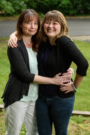 左至右,Kelly Cappello和她的女儿Jenna——她们都戴着印有Jenna名字和韦格纳肉芽肿(Wegner's Granulomatosis)病名的手链,以提高人们对该病的认识。