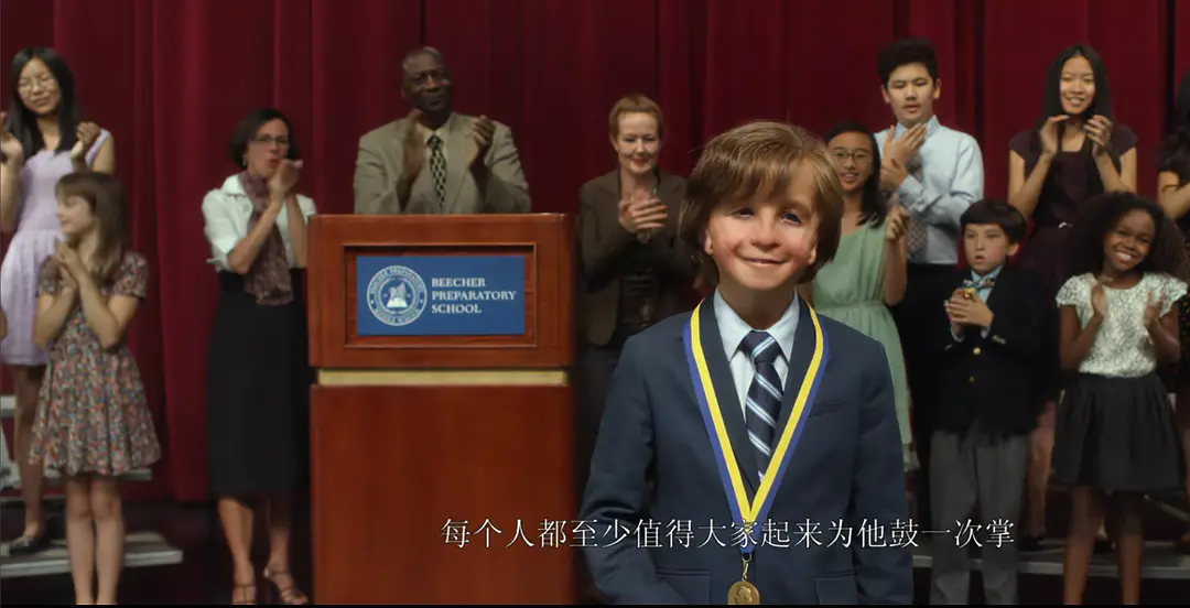 毕业那天,奥吉站上了领奖台,获得了最高荣誉“毕彻奖章”,这枚奖章,是用来奖励那些激励了最多心灵的人。