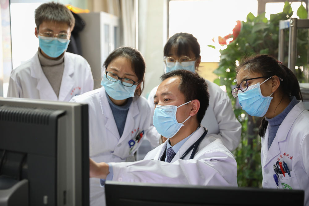 甘肃省人民医院心内二科副主任曹云山(右二)在指导学生(1月13日摄)。新华社记者 马希平 摄