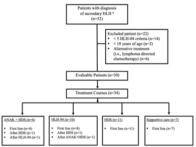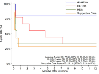 阿那白滞素治疗继发性HLH的疗效已在病例报告和小样本研究中有所报道,主要涉及的是儿科患者的应用,且尚缺少与其他疗法的比较。为此本研究专门评估了多种潜在疗法对继发性HLH成人患者的有效性和持久性。