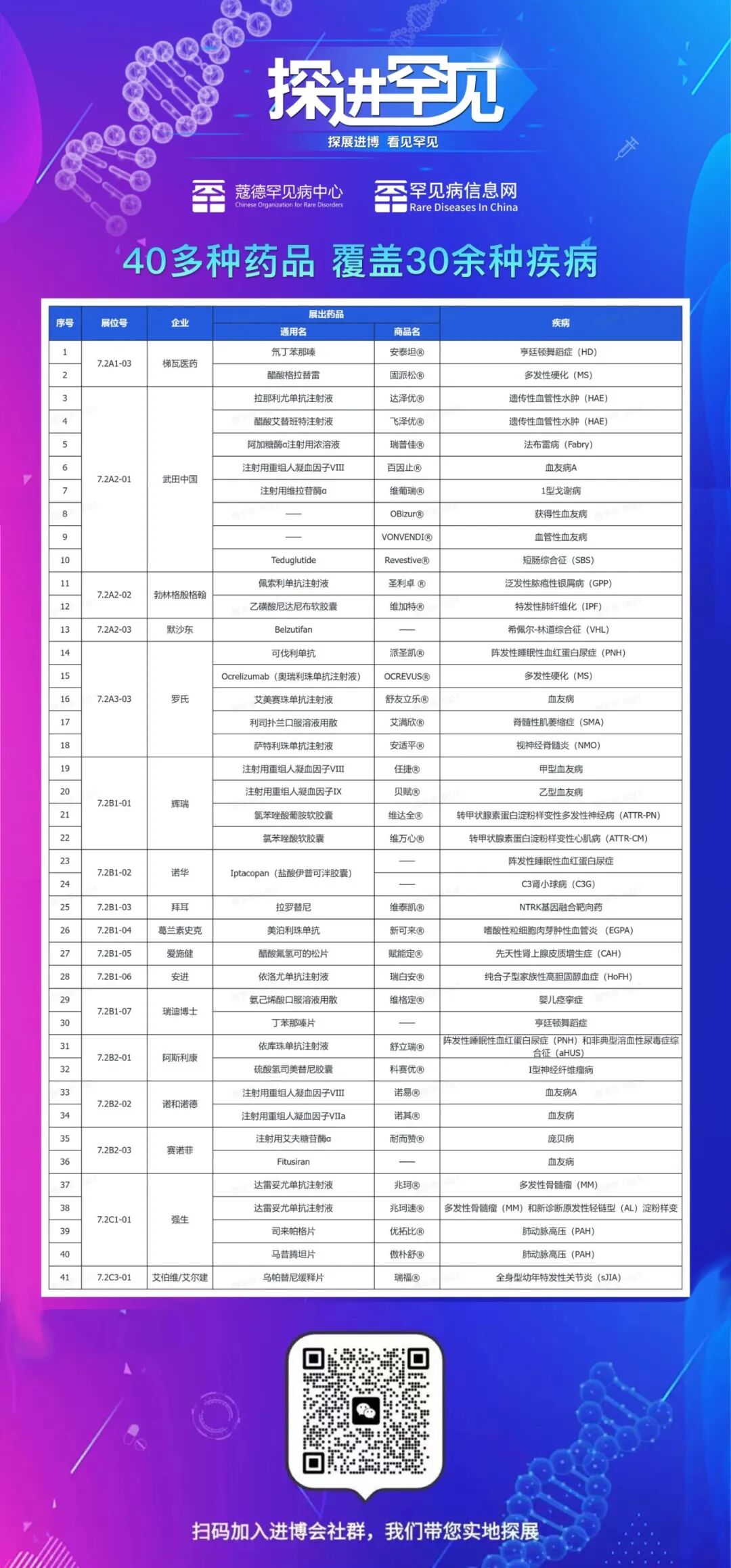 数据说明:本文中的所有信息均基于进博会医药馆(7.2馆)公开展示的药品整理所得。罕见病信息网将不断更新相关数据。如果有任何遗漏或错误,欢迎您在后台留言联系我们进行修订。