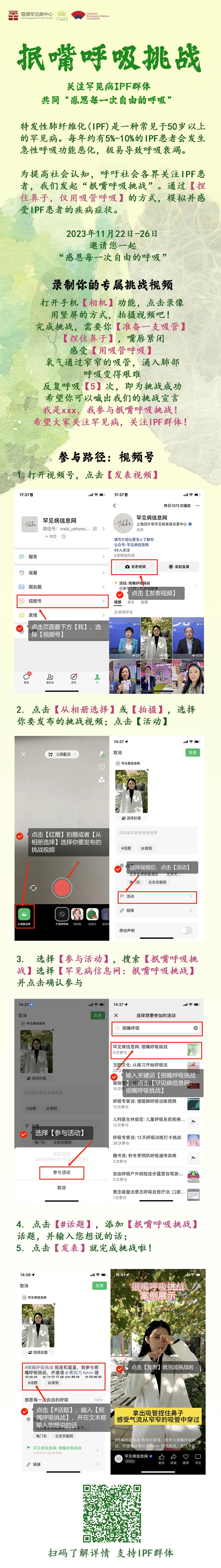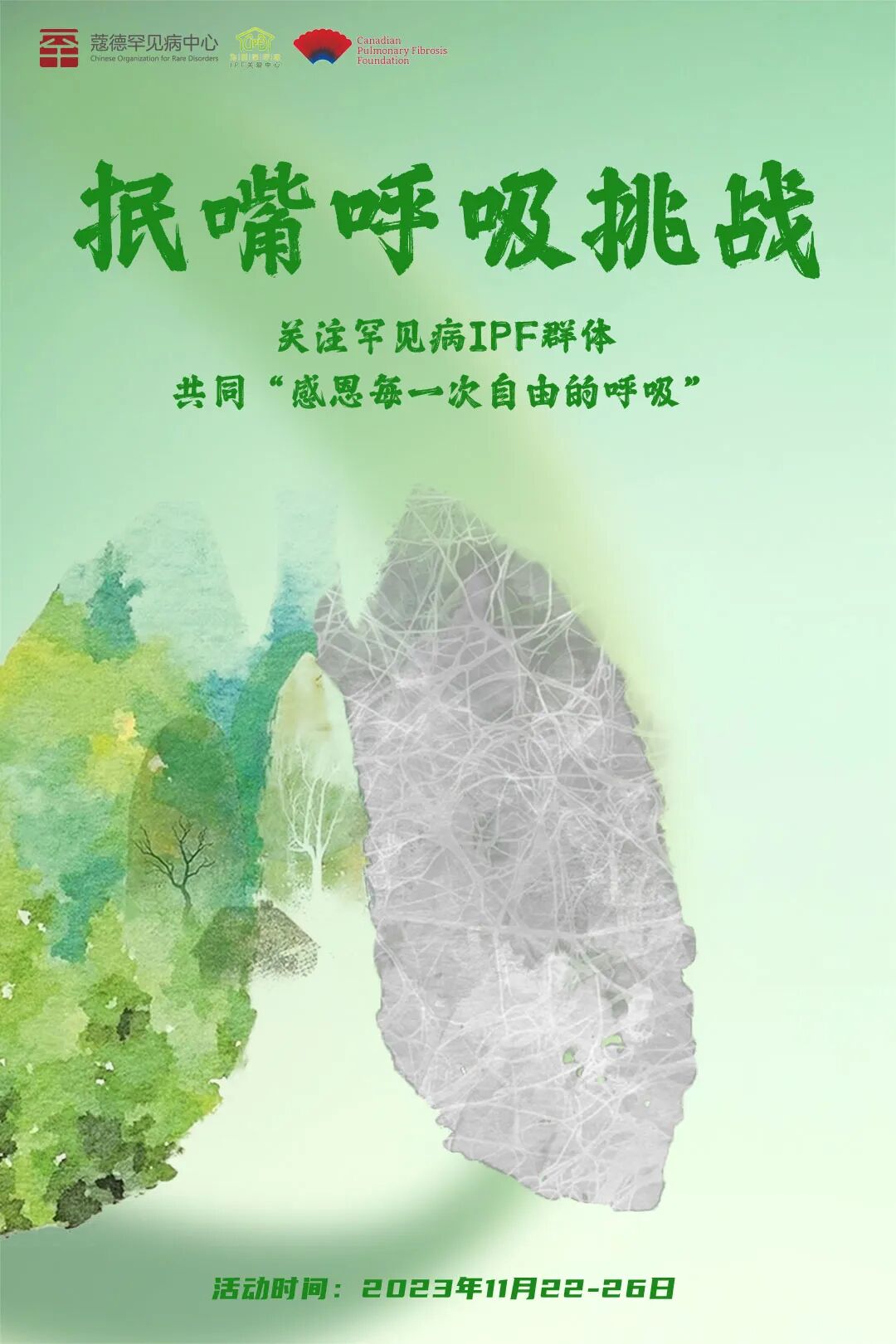 2023年11月22日-26日感恩节期间,蔻德罕见病中心联合为爱深呼吸IPF关爱中心、加拿大肺纤维化基金会共同发起“抿嘴呼吸挑战”,以提高社会认知,呼吁社会各界关注IPF患者。
