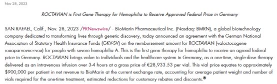 虽然德国的报销价格低于预期,但可以使Roctavian成为欧洲潜在重要产品一位证券分析师表示。