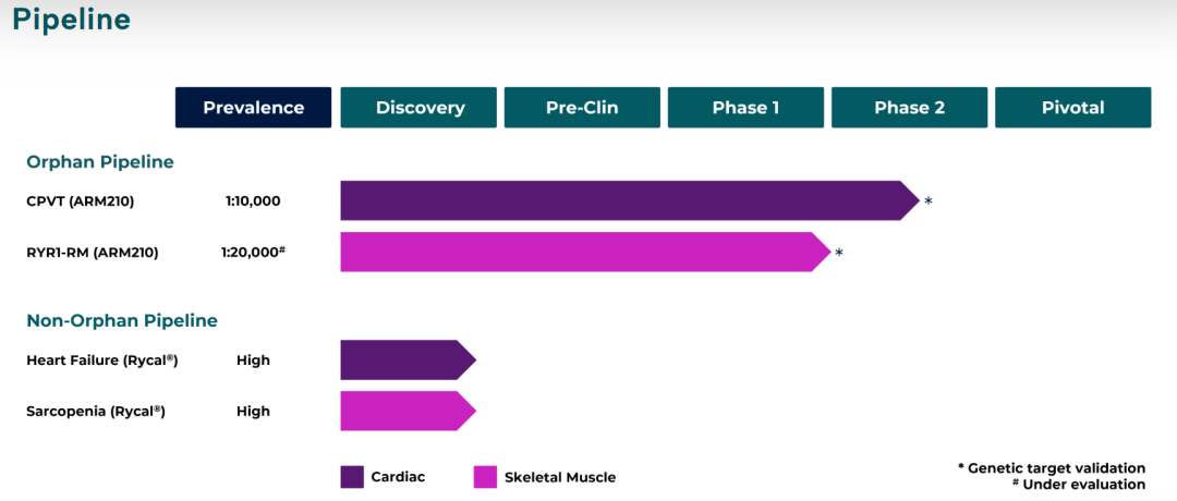 ARM210是一种潜在CPVT疾病修饰疗法,可以修复泄漏的RyR2通道。通过结合和稳定泄漏通道,ARM210可以恢复正常功能,这在动物模型和突变体RyR2的高分辨率结构中得到了证明。除了CPVT之外,ARM210的这种独特机制在其他RyR介导的心脏和骨骼肌疾病中也有潜在用途,如遗传性肌肉疾病兰尼碱受体1相关肌病(RYR1-RM)。