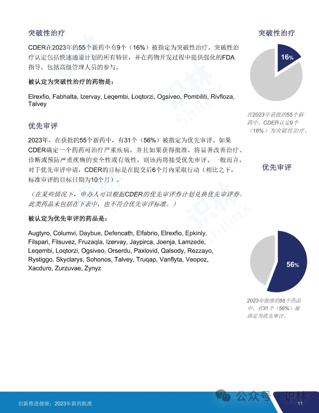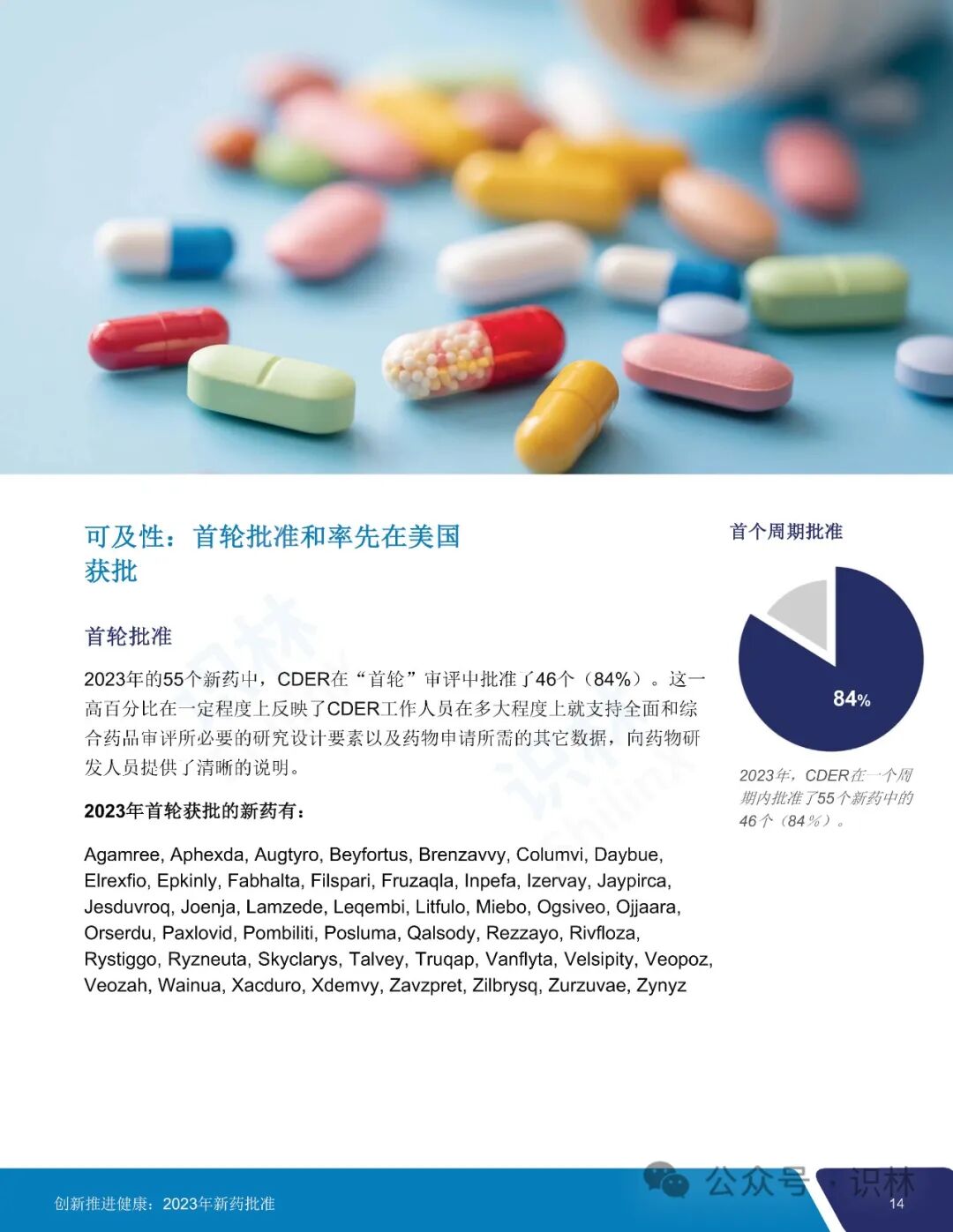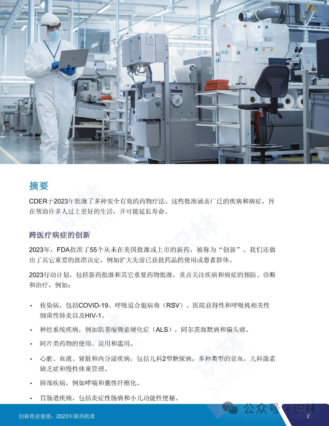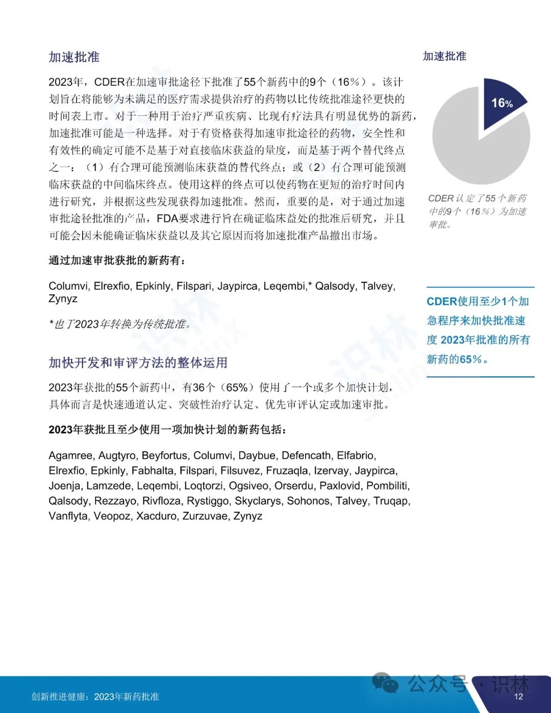 2023 年 CDER 共批准了 55 个新药,其中 20 个(36%)首创新药,28 个(51%)罕见病用药。
