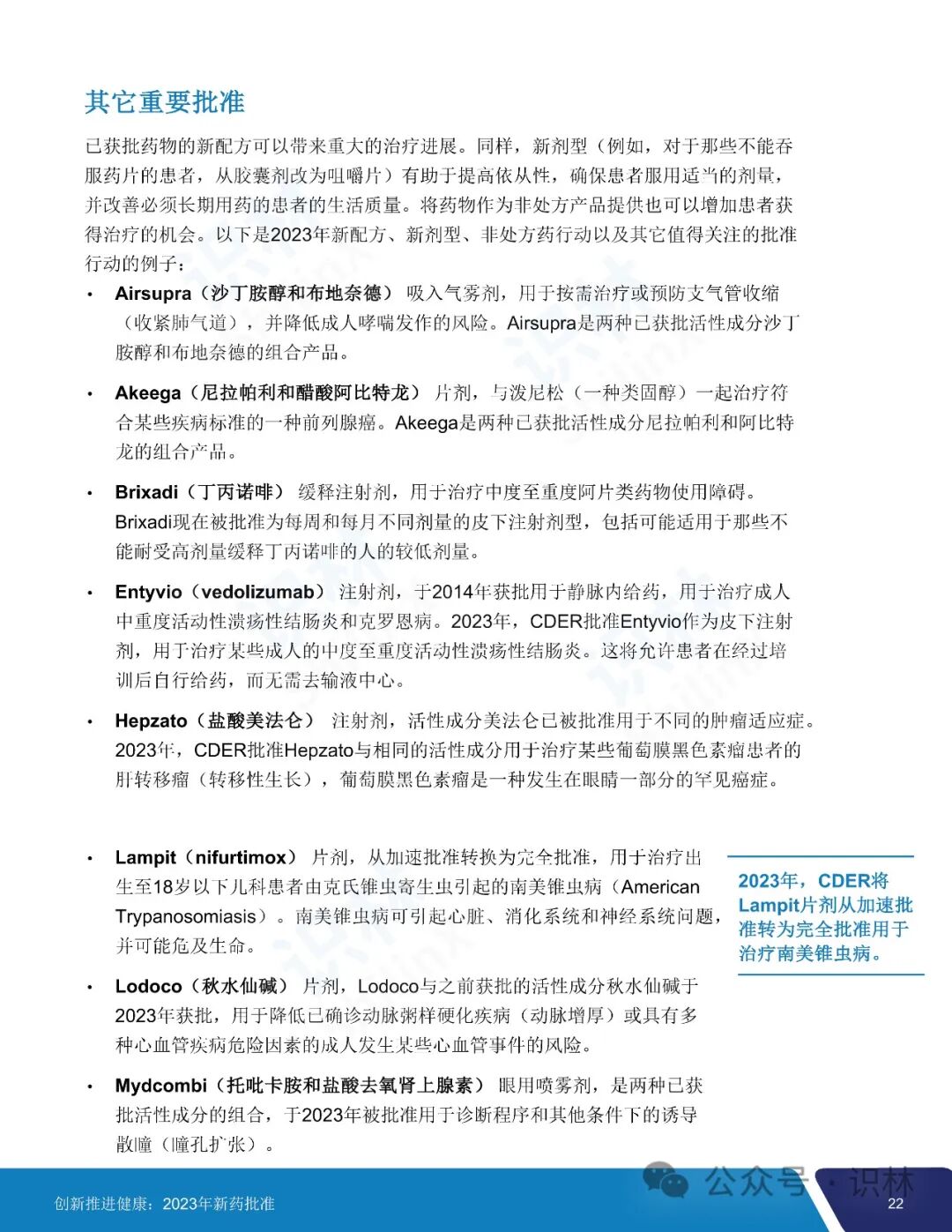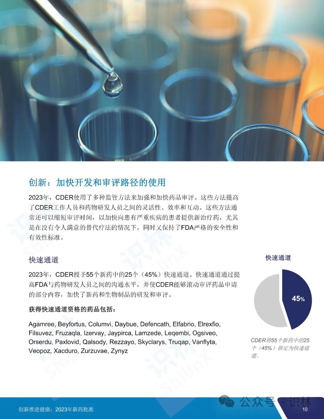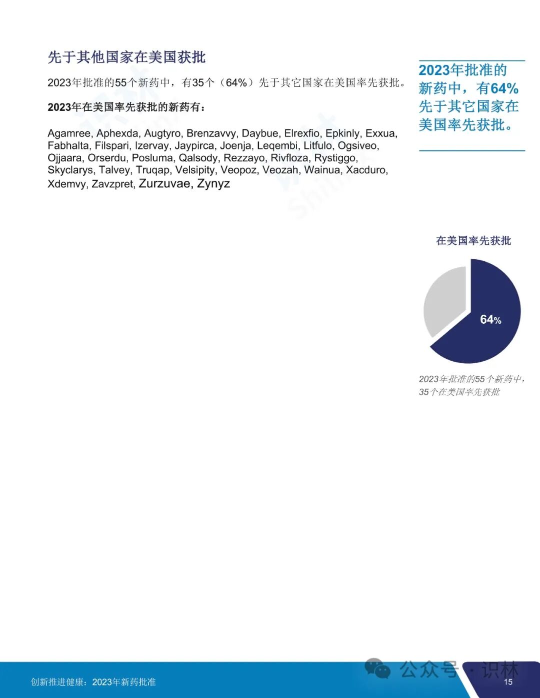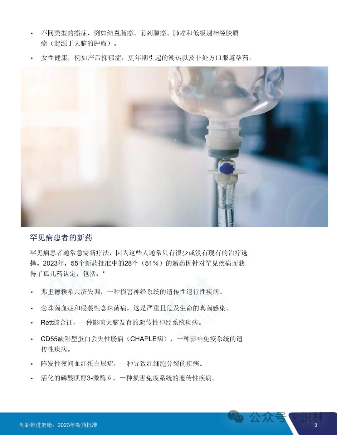 2023 年 CDER 共批准了 55 个新药,其中 20 个(36%)首创新药,28 个(51%)罕见病用药。
