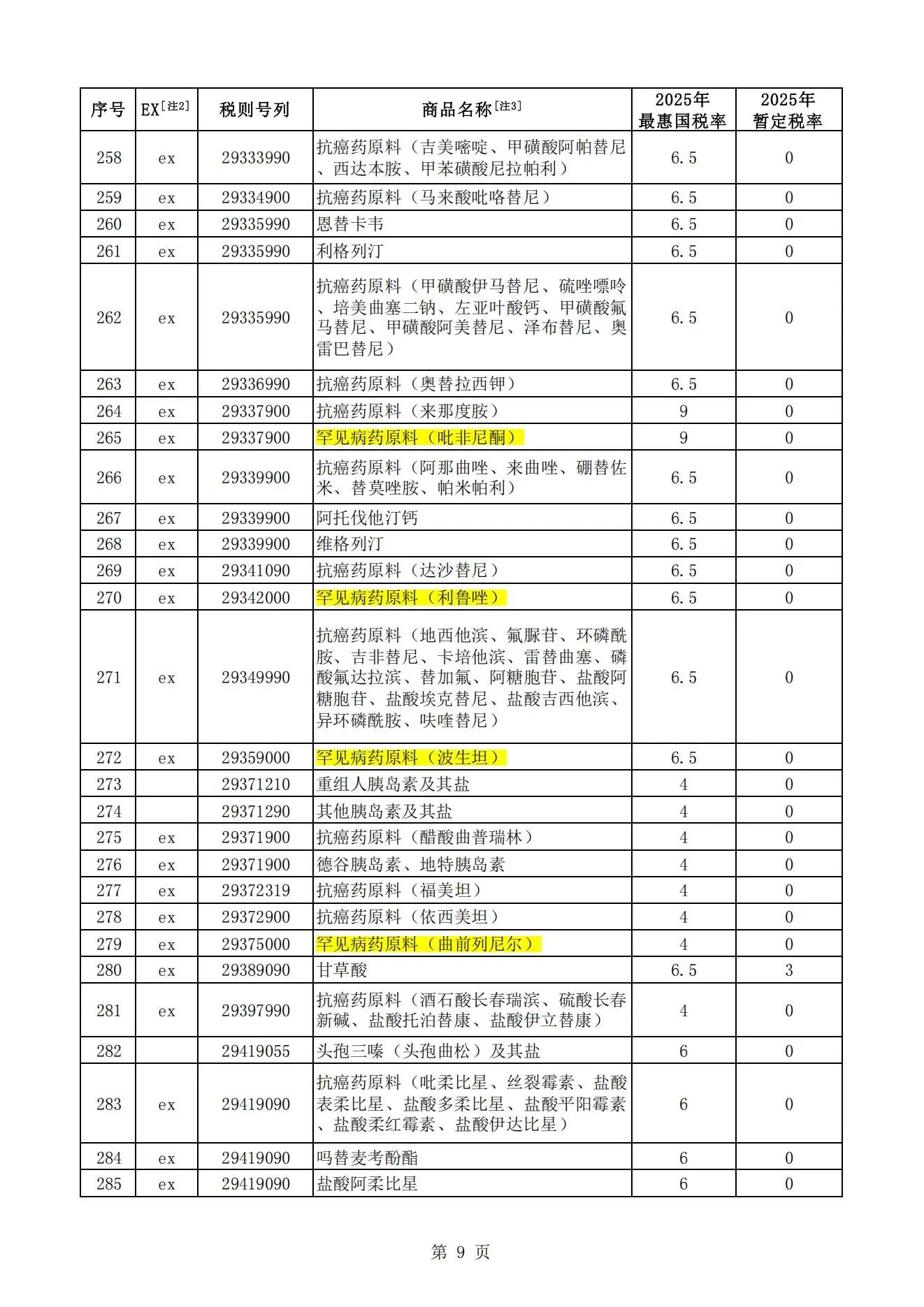 公告附表显示,我国将继续对部分治疗罕见病的药品和原料等实施零关税。