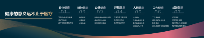 “健康”的定义在当今社会已极大扩展,它远不止于医疗,还包括身体健康、精神健康、环境健康、公共健康、人际关系健康及工作环境健康等。我们身处一个高度发展又充满不确定性的世界,对健康的追求涵盖生活的方方面面。