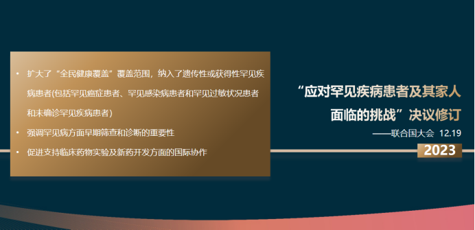 我为什么强调这项决议?因为罕见疾病在联合国层面的发声,正是紧扣“全民健康覆盖”这一核心展开的。