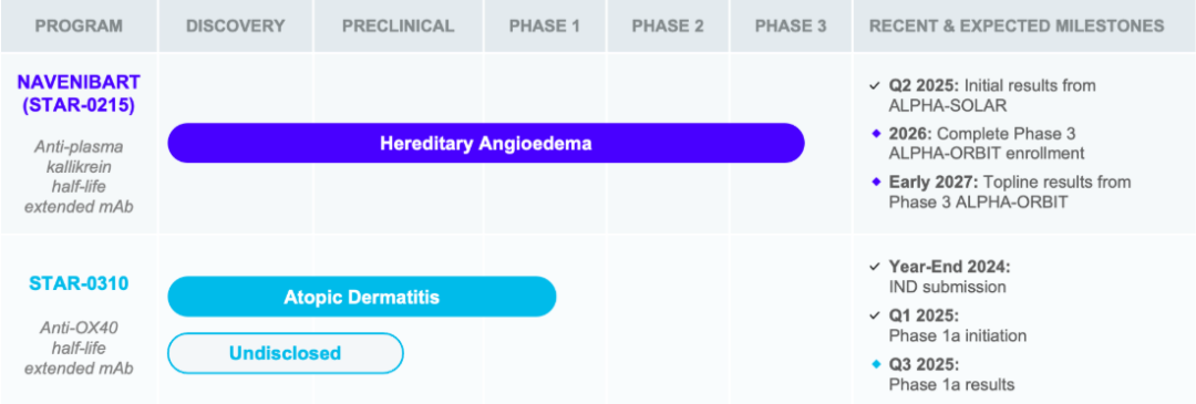 BioCryst收购Astria主要是看中其产品Navenibart,这是一种可注射的长效血浆激肽释放酶抑制剂单抗,用于预防遗传性血管性水肿(HAE)的发作。该药物有望显著改善现有注射治疗方案,目前正处于3期临床开发阶段,关键3期临床数据预计将于2027年公布。
