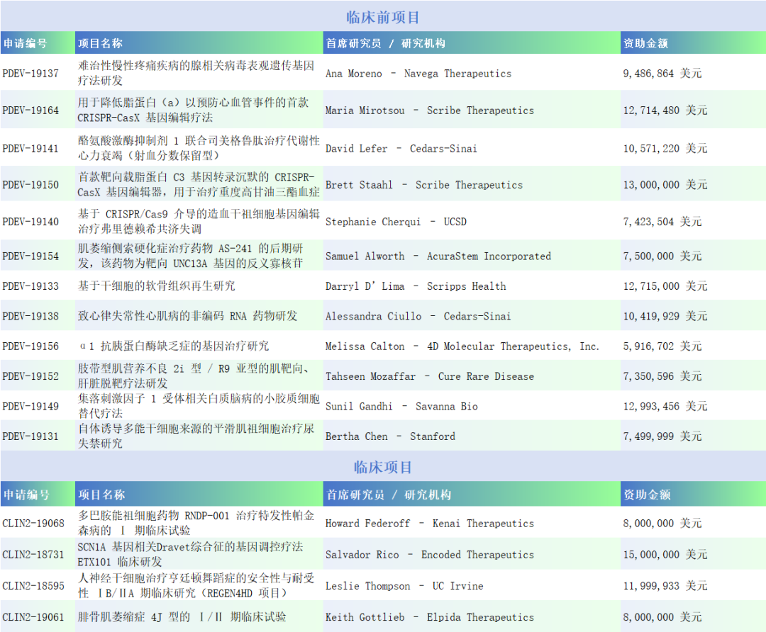 此次大规模资助源于2020年加州通过的第14号提案,该提案划拨55亿美元专项用于细胞与基因疗法研发,其中15亿美元定向支持中枢神经系统疾病相关研究。基于这一使命导向,研究所将中枢神经系统疾病相关项目申请列为优先资助对象。本轮获批的所有临床试验项目,均聚焦于神经系统疾病。