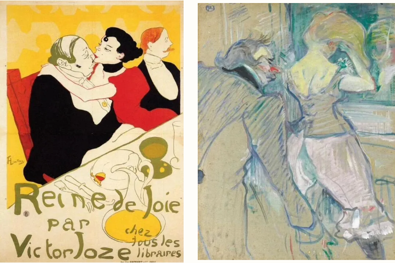 身体的局限将他推向了艺术世界。1882年他来到巴黎,迅速被新兴的蒙马特区吸引。这里充斥着歌舞厅、咖啡馆和妓院,是各类边缘人的乐园。对于内心敏锐的洛特雷克而言,蒙马特是一个精神归属地。他宣言:“我尽量描写真实而不描写理想。”这句箴言贯穿了他的一生。